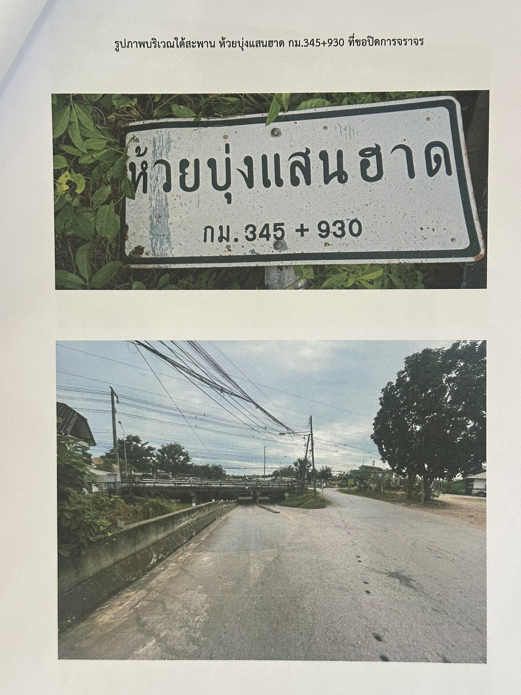ขอปิดการจราจรบริเวณใต้สะพาน ห้วยบุ่งแสนฮาด กม.345+930