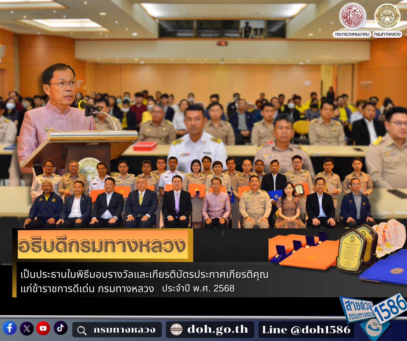 อธิบดีกรมทางหลวง เป็นประธานในพิธีมอบรางวัลและเกียรติบัตรประกาศเกียรติคุณแก่ข้าราชการดีเด่น กรมทางหลวง ประจำปี พ.ศ. 2567