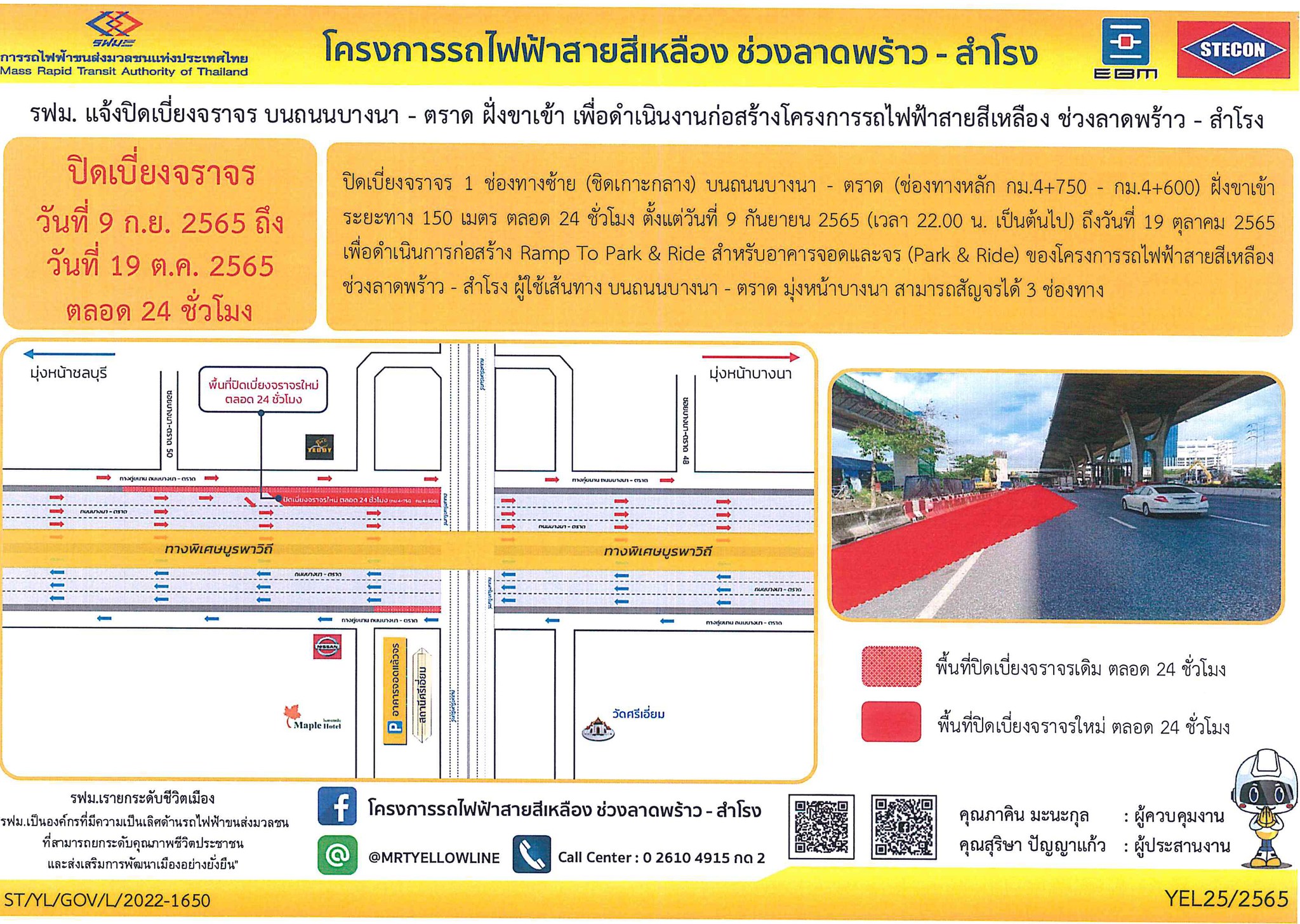 แจ้งเบี่ยงจราจรเนื่องจากโครงการรถไฟฟ้าสายสีเหลือง