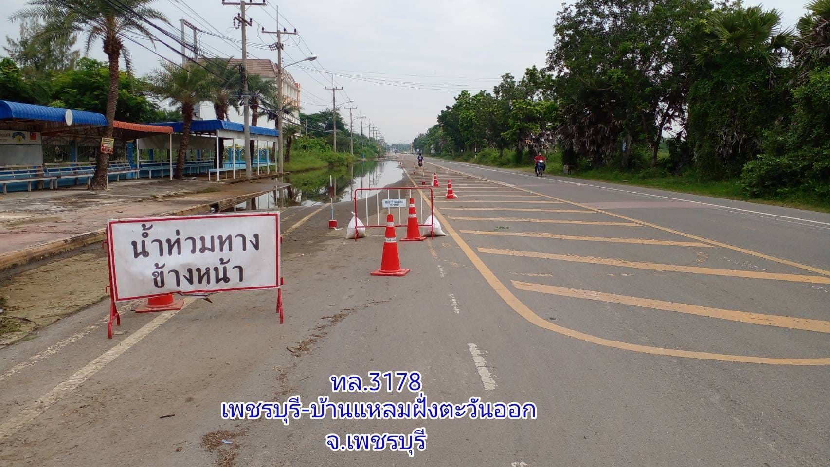 1. ทล.3178 ช่วง เพชรบุรี-บ้านแหลมฝั่งตะวันออก กม.10+700-10+900 ระดับน้ำสูง 10 ซม พื้นที่ อ.บ้านแหลม