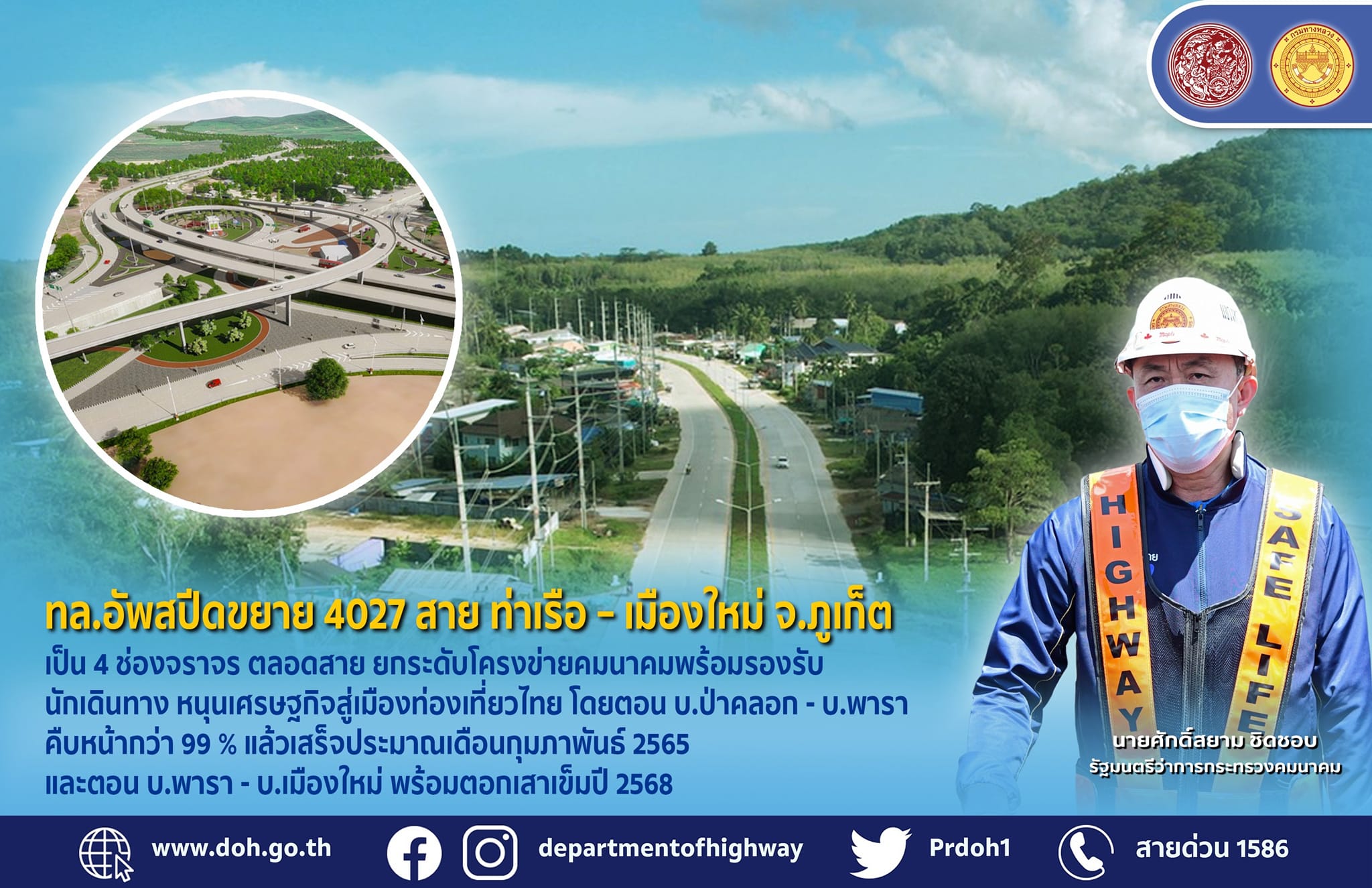 รัฐมนตรีว่าการกระทรวงคมนาคมจึงผลักดันให้ขยายเส้นทางหลวงหมายเลข 4027 สาย ท่าเรือ – เมืองใหม่ พื้นที่อำเภอถลาง จังหวัดภูเก็ต จาก 2 ช่องจราจร เป็น 4 ช่องจราจร โดยที่ผ่านมากรมทางหลวงได้ดำเนินโครงการพัฒนาทางหลวงสาย 4027 ตอน บ.ท่าเรือ-ป่าคลอก ระหว่าง กม.0+000 - กม.5+900 ระยะทาง 5.9 กิโลเมตร แล้วเสร็จและเปิดให้ใช้บริการเพื่ออำนวยความสะดวกแก่ประชาชนผู้ใช้ทางไปแล้ว โดยเหลือเพียง 2 ตอนคือ ตอน