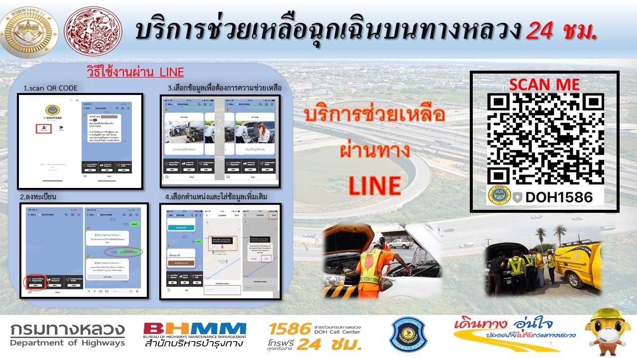 กรมทางหลวง อำนวยความสะดวกและปลอดภัยช่วงเทศกาลปีใหม่ 2565 พร้อมเปิดบริการช่วยเหลือฉุกเฉินผ่านไลน์ตลอด 24 ชม. เพื่อรองรับการเดินทางของประชาชน