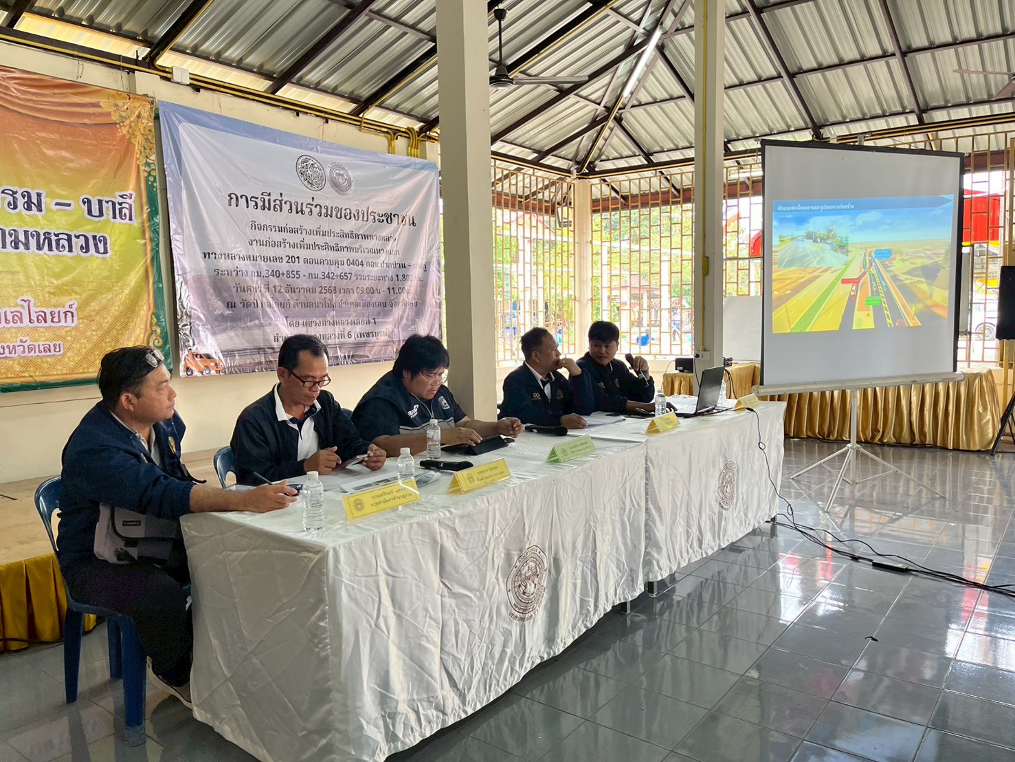 นายพงษ์ศักดิ์ อาจลา ผู้อำนวยการแขวงทางหลวงเลยที่ 1 พร้อมด้วย รองผู้อำนวยการแขวงทางหลวง หัวหน้าหมวดทางหลวงเลย และเจ้าหน้าที่ในสังกัด ดำเนินการจัดการประชุมการมีส่วนร่วมของประชาชน กิจกรรมก่อสร้างเพิ่มประสิทธิภาพทางหลวง งานก่อสร้างเพิ่มประสิทธิภาพบริเวณทางแยก ทางหลวงหมายเลข 201 ตอนควบคุม 0404 ตอน ปากปวน – ปากภู ระหว่าง กม.340+855 - กม.342+657 รวมระยะทาง 1.802 กม. โดยมี นายประชา แสนกลาง นายอำเภอเมืองเลย เป็นประธาน ณ วัดป่าเลไลยก์ ตำบลนาโป่ง อำเภอเมืองเลย จังหวัดเลย