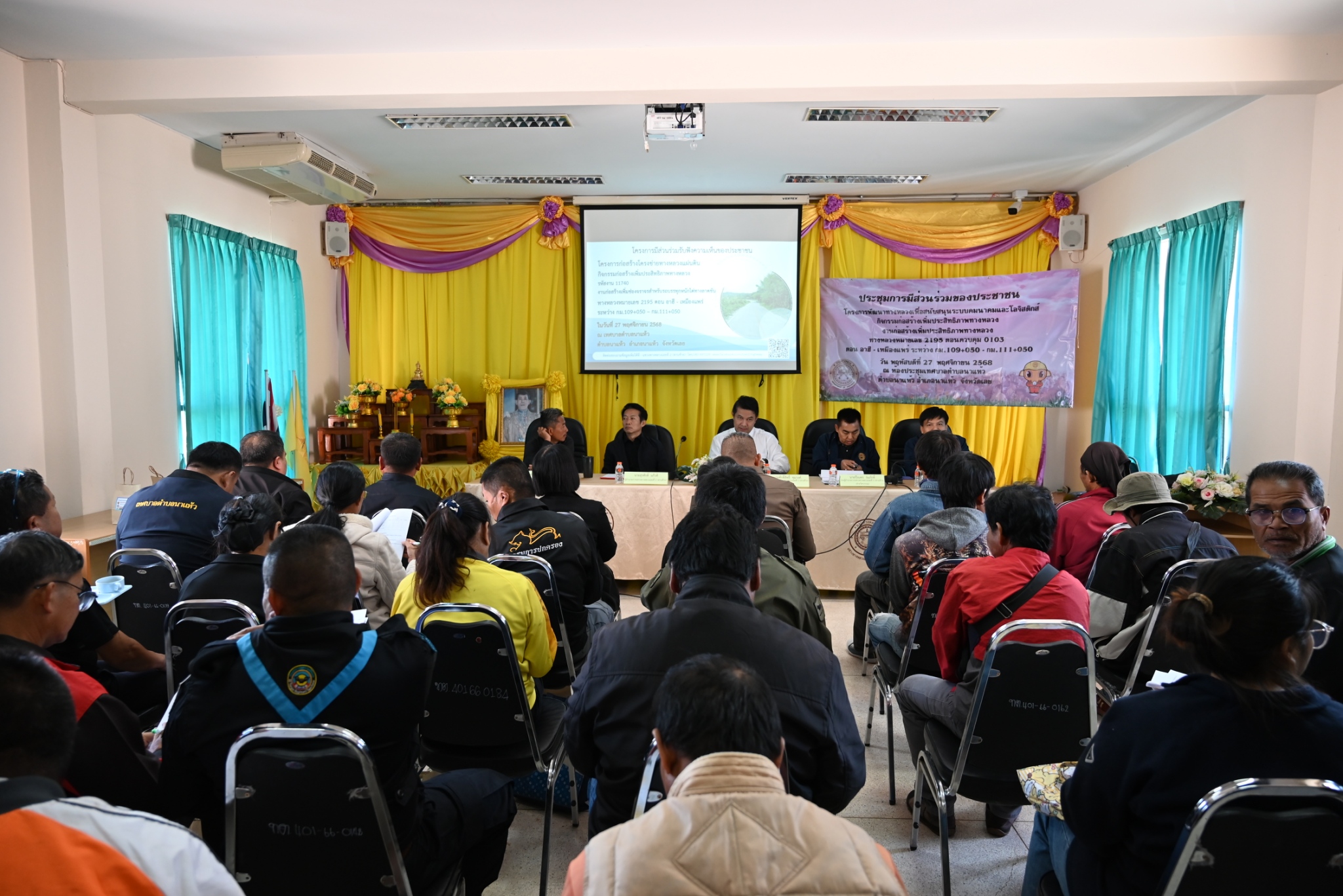 การประชุมการมีส่วนร่วมของประชาชน เพื่อชี้แจงรายละเอียดและรับฟังความคิดเห็นและข้อเสนอแนะโครงการพัฒนาทางหลวงเพื่อสนับสนุนระบบคมนาคมและโลจิสติกส์ กิจกรรมก่อสร้างเพิ่มประสิทธิภาพ ทางหลวง งานก่อสร้างเพิ่มประสิทธิภาพทางหลวง ทางหลวงหมายเลข 2195 ตอน อาฮี - เหมืองแพร่ ระหว่าง กม.109+050 - กม.111+050