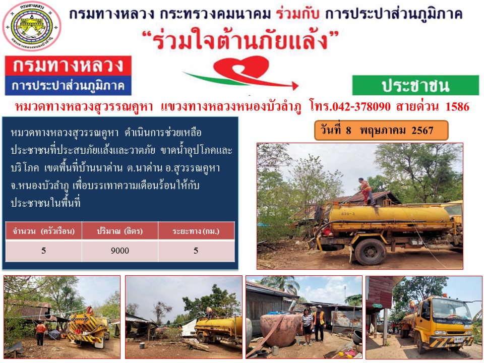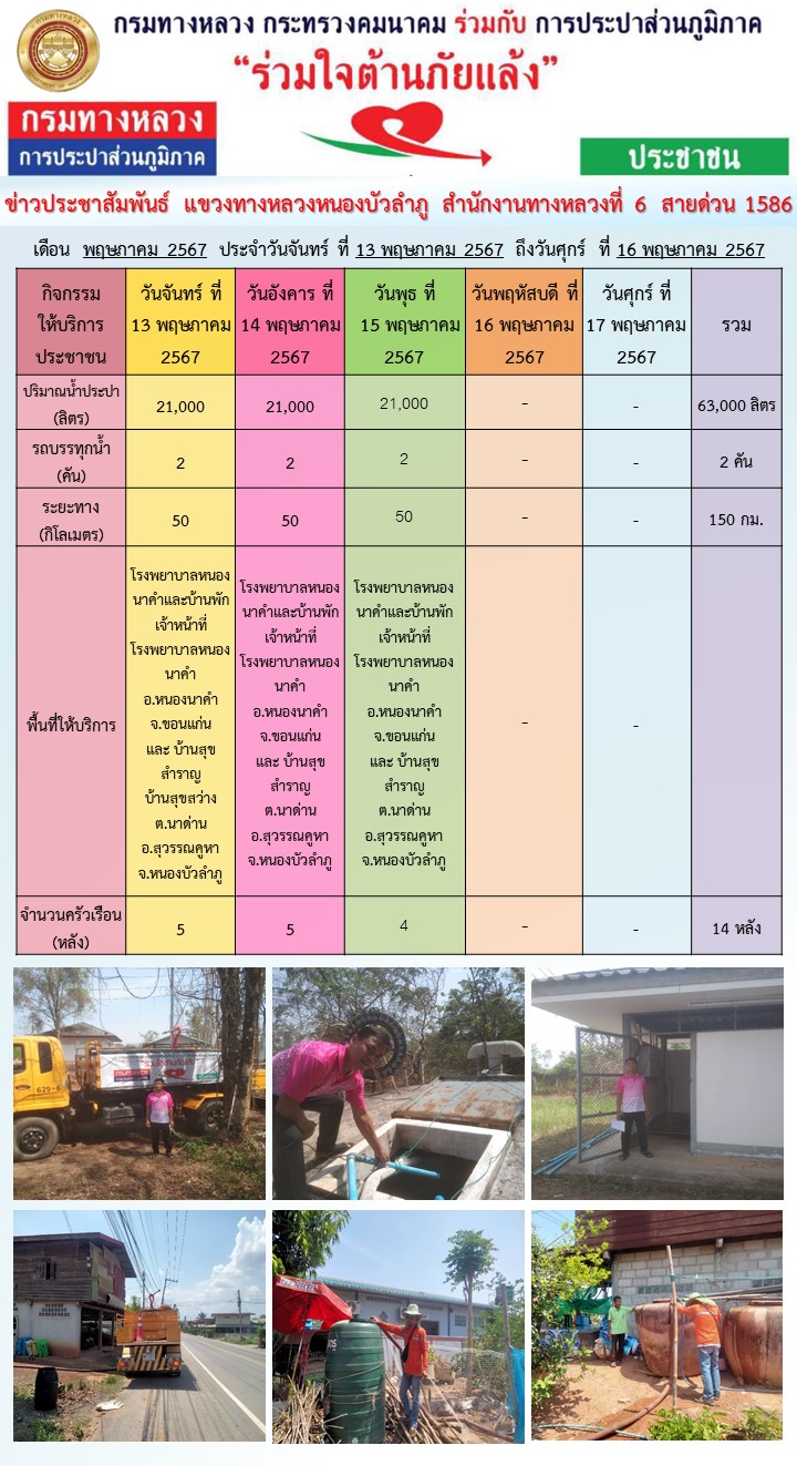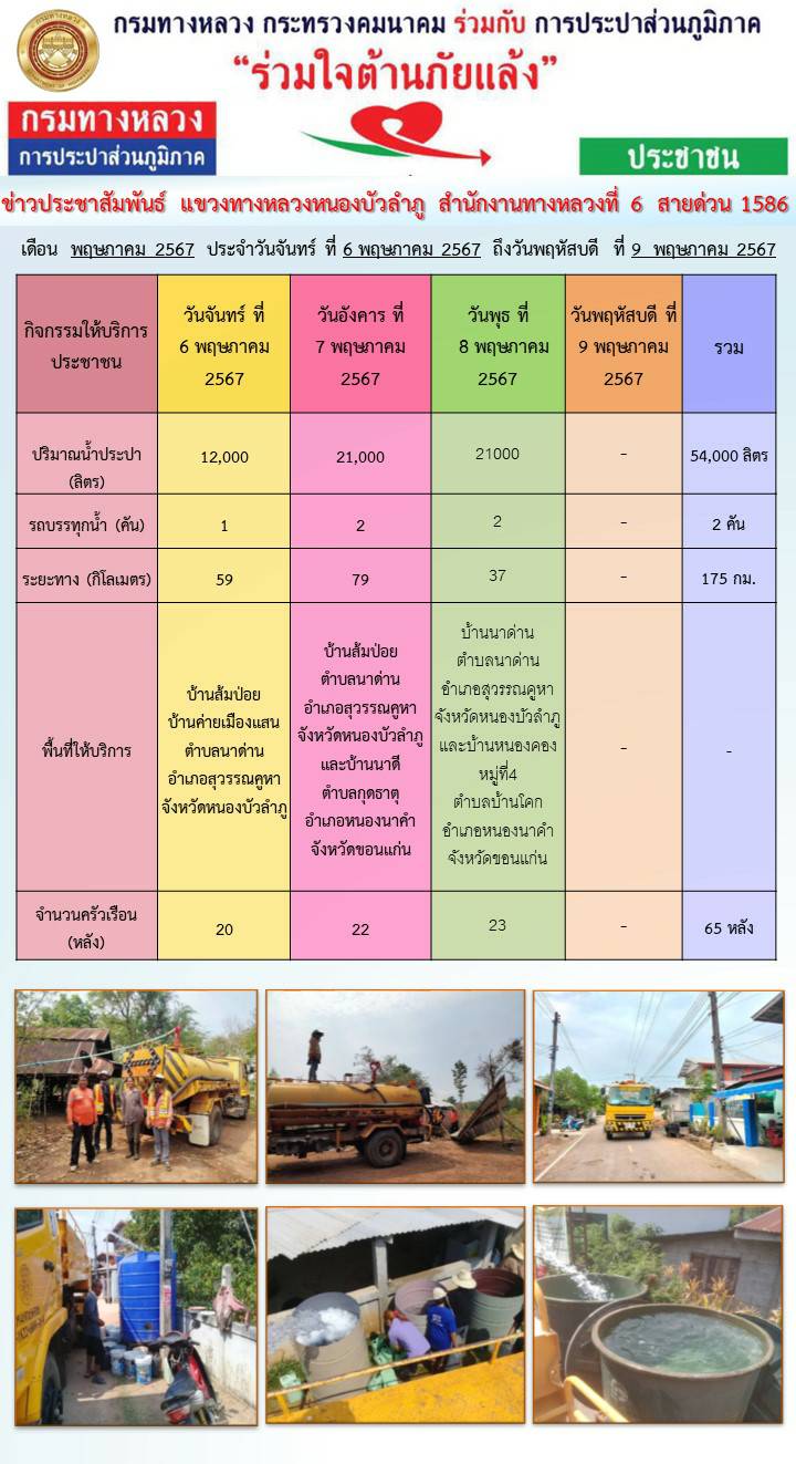 แขวงทางหลวงหนองบัวลำภู กรมทางหลวง กระทรวงคมนาคม การประปาส่วนภูมิภาค ร่วมใจต้านภัยแล้ง