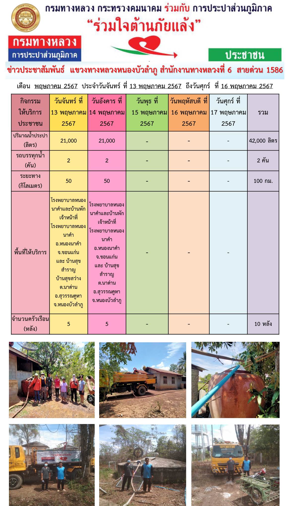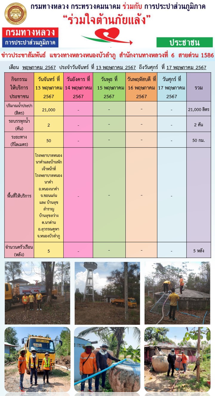 แขวงทางหลวงหนองบัวลำภู ร่วมใจต้านภัยแล้ง ปี 2567