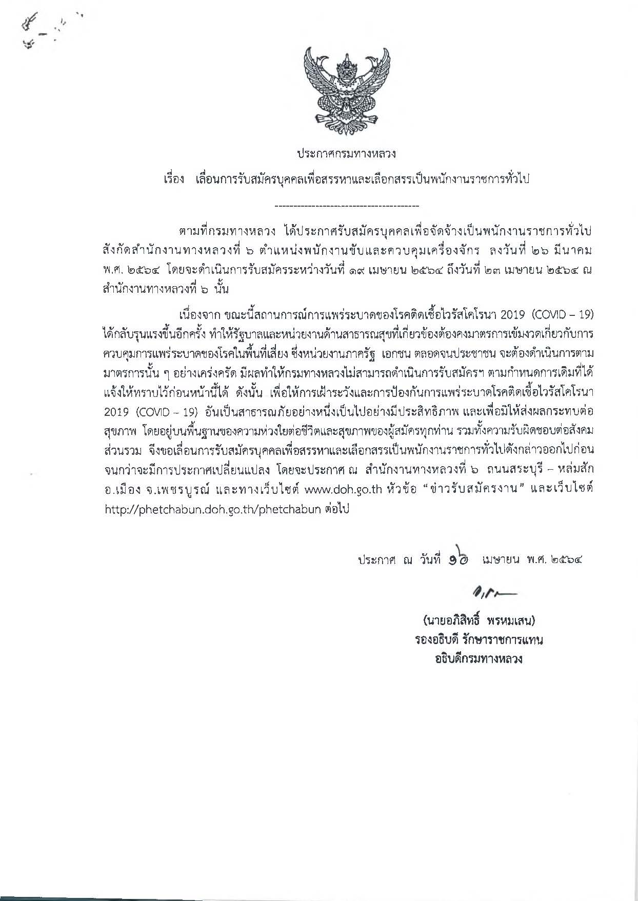 สำนักงานทางหลวงที่ 6 (เพชรบูรณ์) ประกาศเลื่อนการรับสมัครบุคคลเพื่อสรรหาและเลือกสรรเป็นพนักงานราชการทั่วไป ตำแหน่ง พนักงานขับและควบคุมเครื่องจักร
