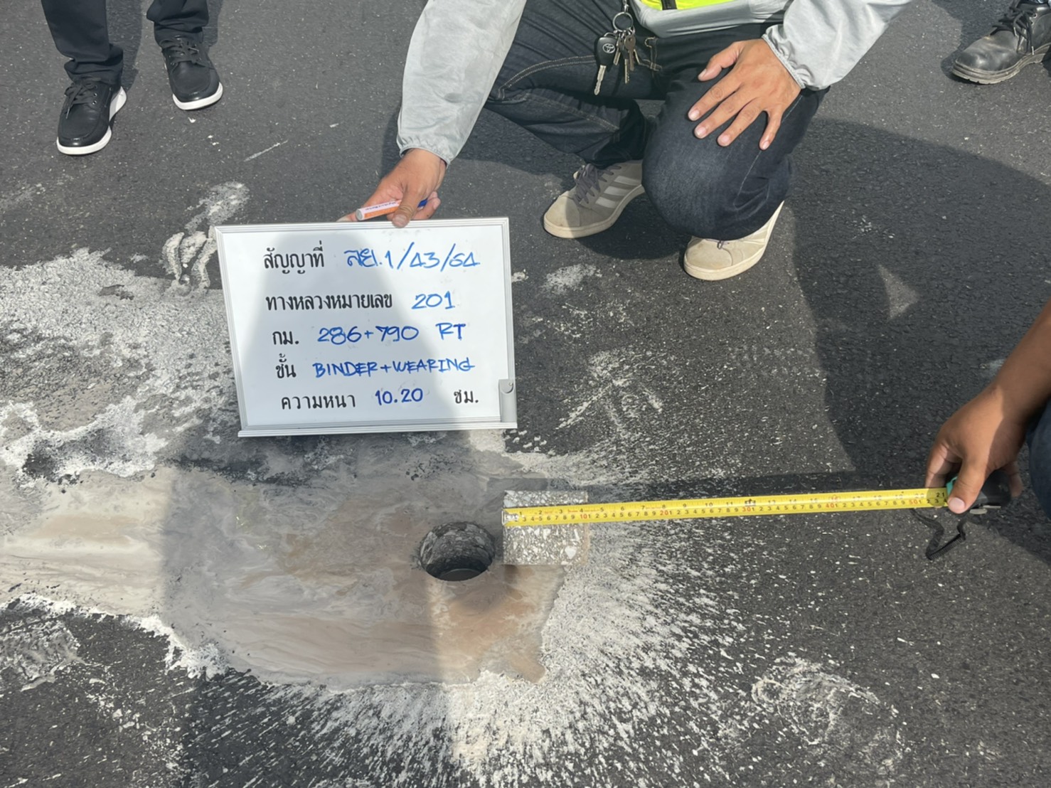 นายอภิชาต อุปสิทธิ์ ผู้อำนวยการสำนักงานทางหลวงที่ 6 ลงพื้นที่ตรวจรับงานตามสัญญา เลขที่ ลย.1/43/2564 ลงวันที่ 30 มีนาคม 2564 งานบูรณาทางผิวแอสฟัลต์ ในทางหลวงหมายเลข 201
