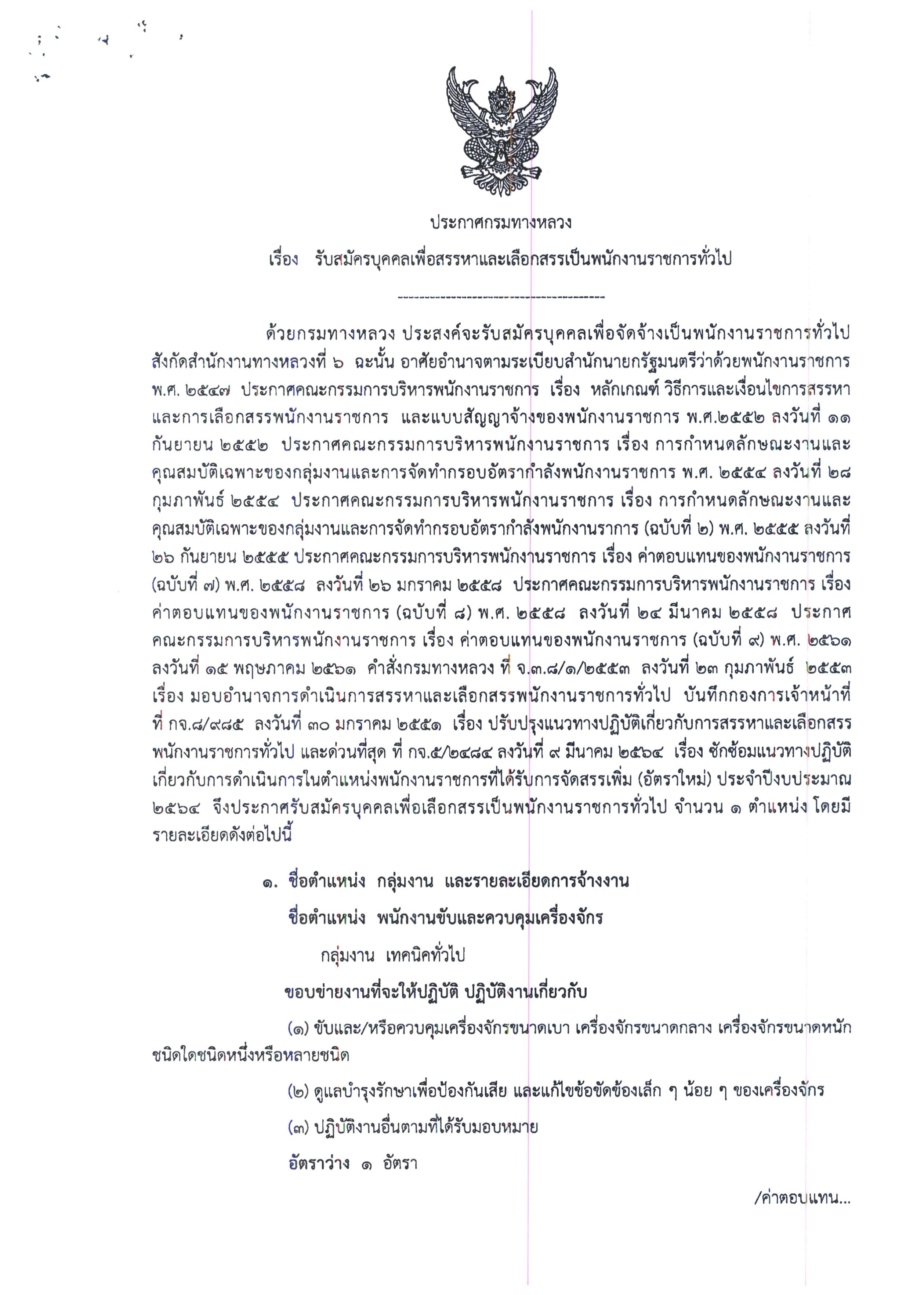 ประกาศรับสมัครบุคคลเพื่อสรรหาและเลือกสรรเป็นพนักงานราชการทั่วไป ตำแหน่งพนักงานขับและควบคุมเครื่องจักร ตั้งแต่วันที่ 15 ตุลาคม 2564 - 21 ตุลาคม 2564
