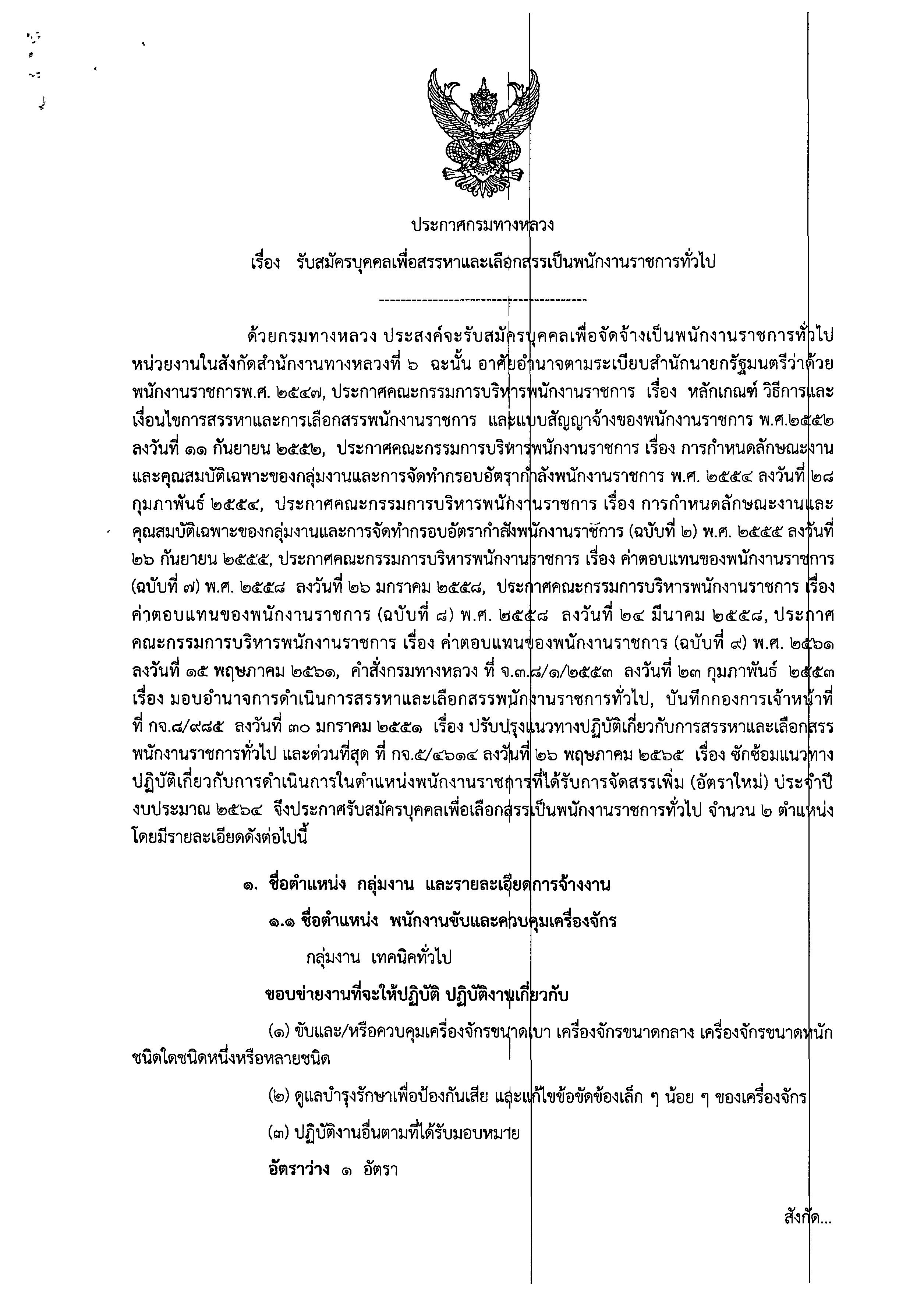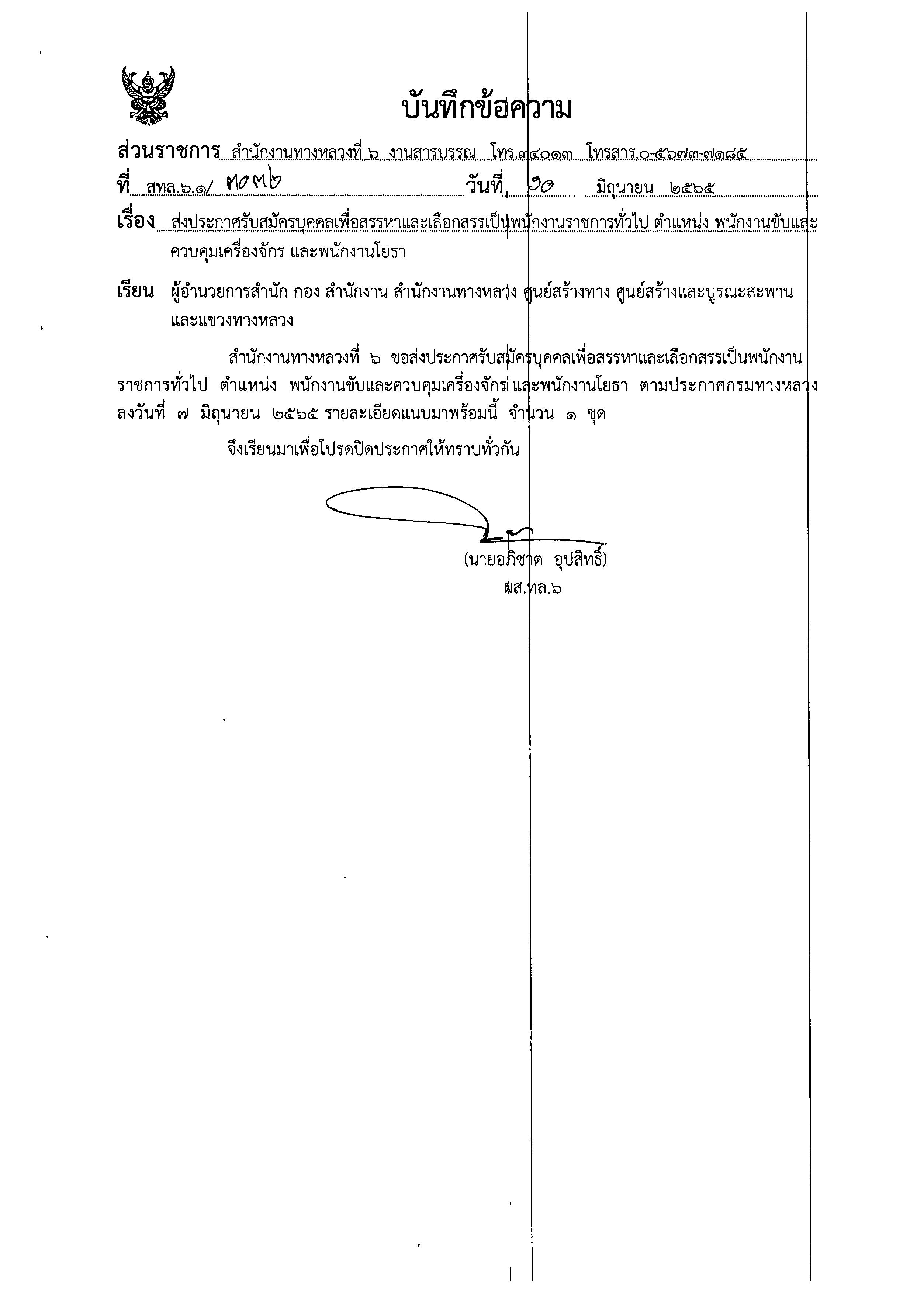 ประกาศรับสมัครบุคคลเพื่อสรรหาและเลือกสรรเป็นพนักงานราชการทั่วไป ตำแหน่งพนักงานขับและควบคุมเครื่องจักร, ตำแหน่งพนักงานโยธา ตั้งแต่วันที่ 17 - 23 มิถุนายน 2565