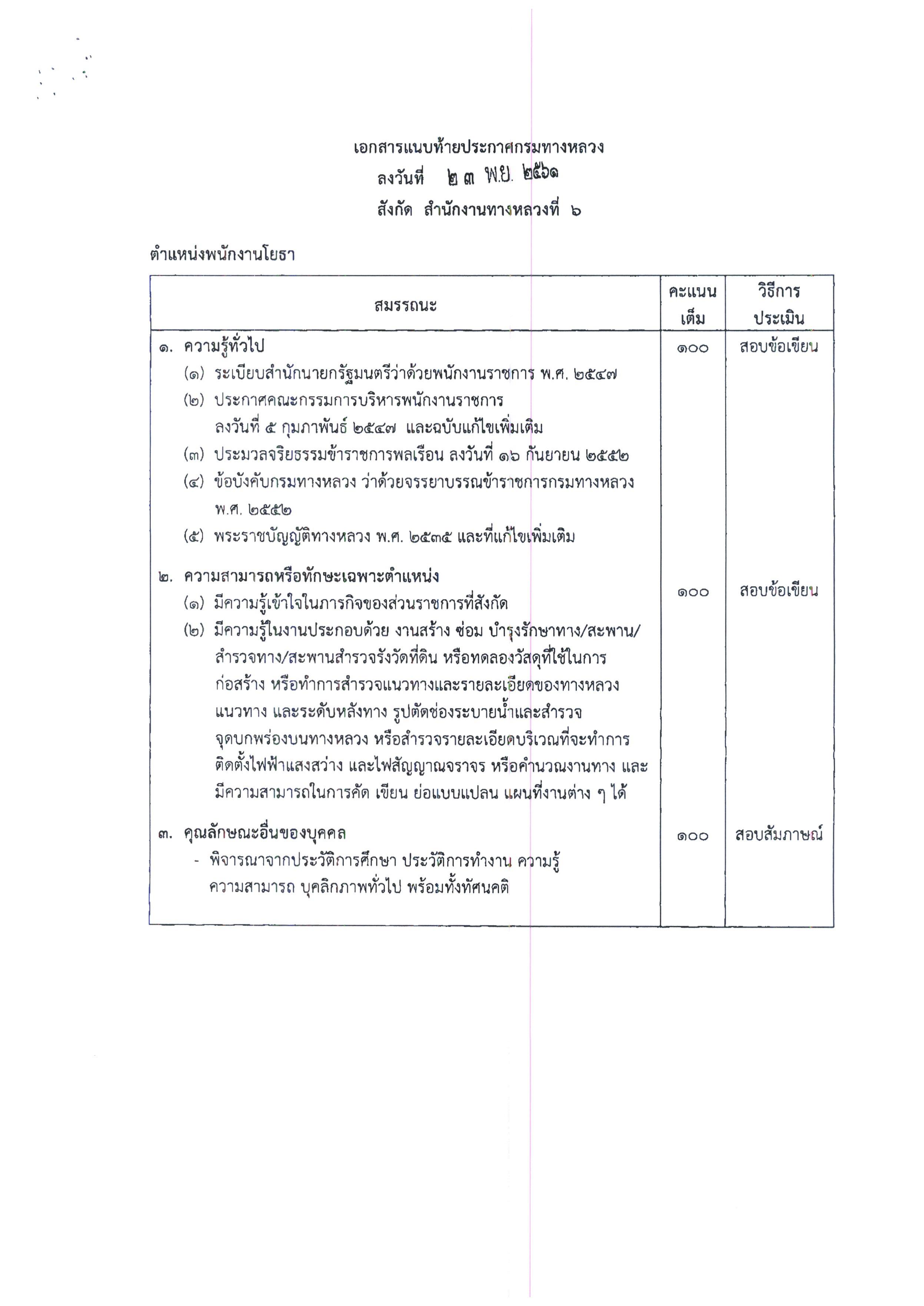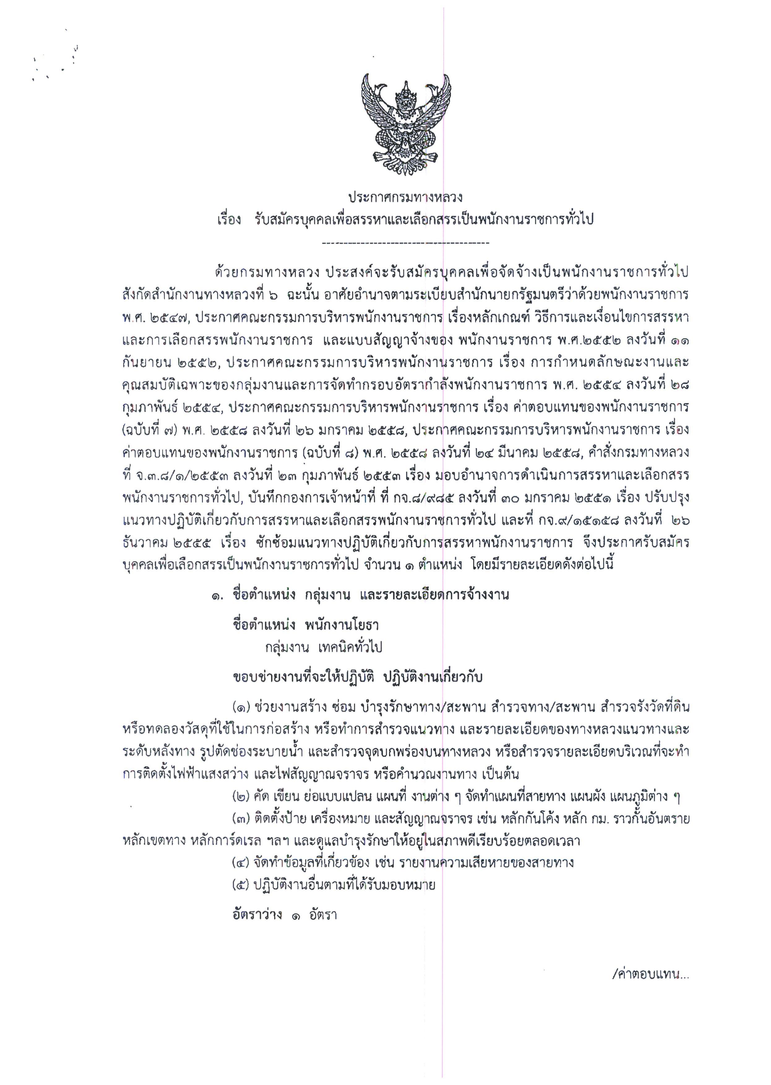 สำนักงานทางหลวงที่ 6 (เพชรบูรณ์) ประกาศรับสมัครบุคคลเพื่อเลือกสรรเป็นพนักงานราชการทั่วไป ตำแหน่งพนักงานโยธา ตั้งแต่วันที่ 17 ธ.ค. - 21 ธ.ค. 2561