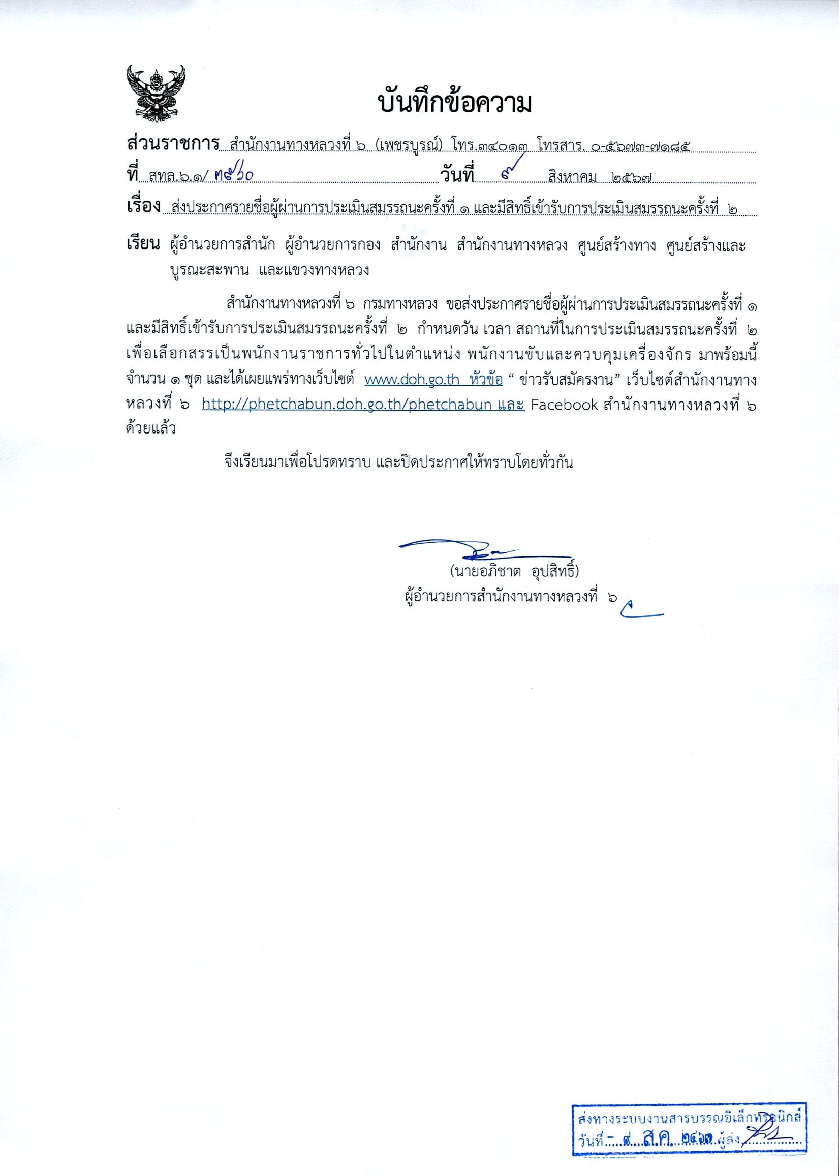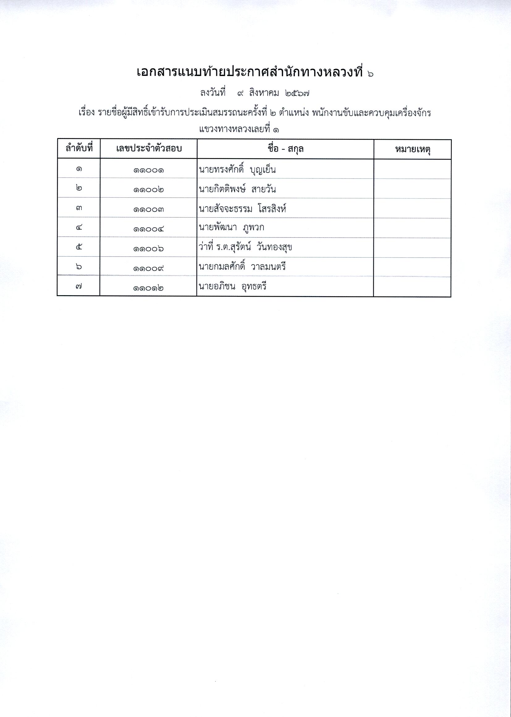 ประกาศรายชื่อผู้ผ่านการประเมินสมรรถนะครั้งที่ 1 และกำหนดวัน เวลา สถานที่ในการประเมินสมรรถนะครั้งที่ 2 ตำแหน่งพนักงานขับและควบคุมเครื่องจักร