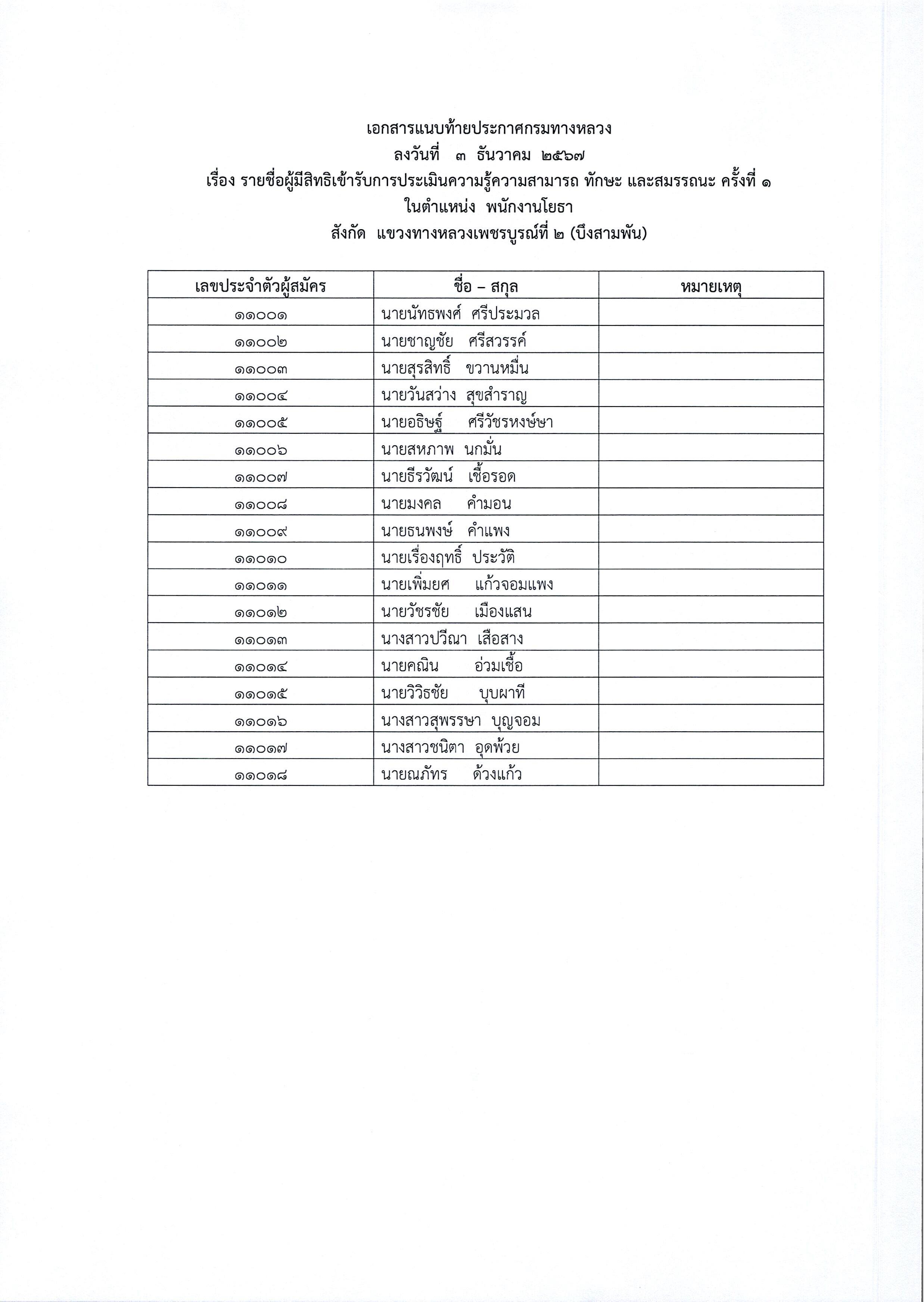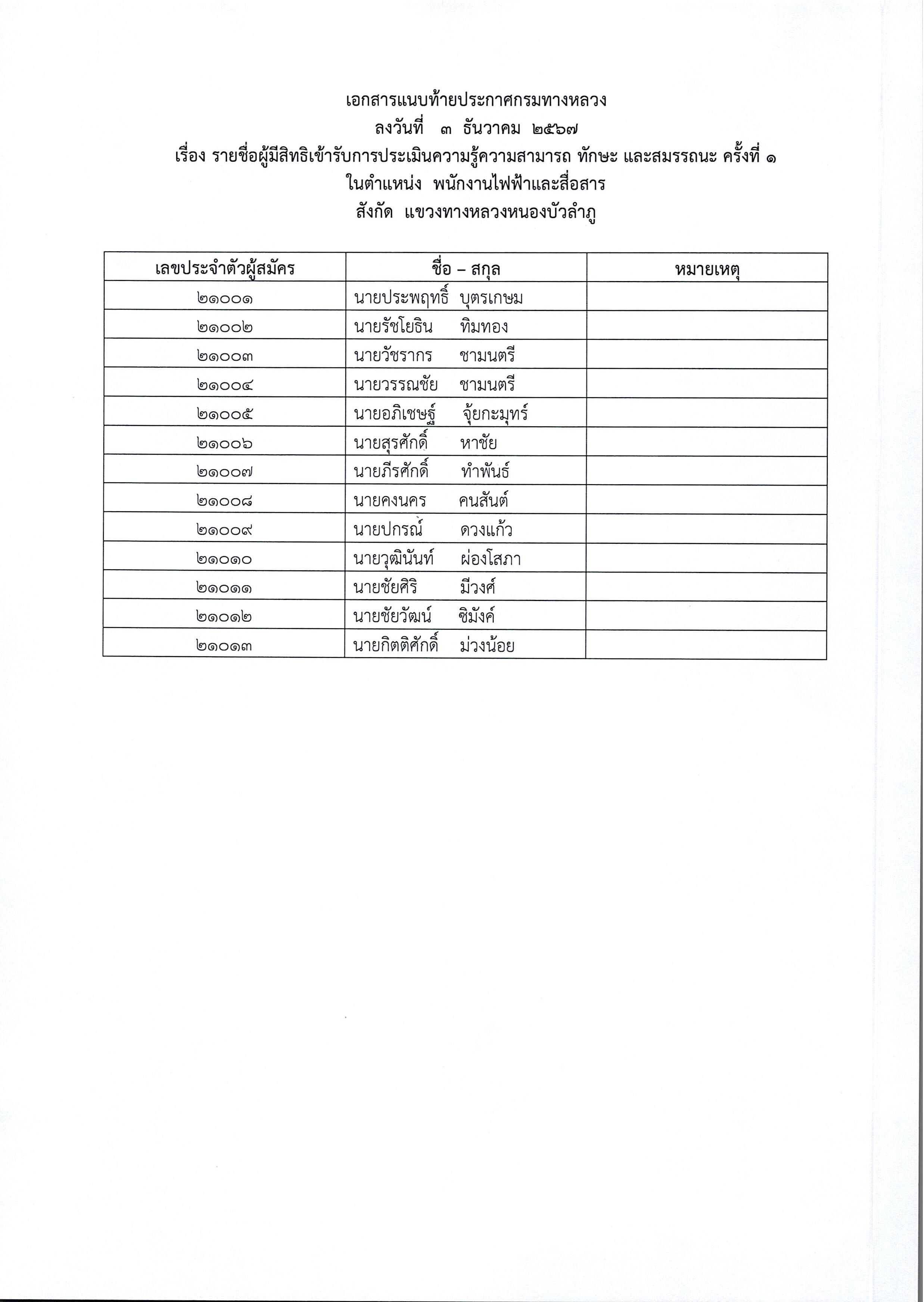 ประกาศรายชื่อผู้มีสิทธิ์เข้ารับการประเมินสมรรถนะ