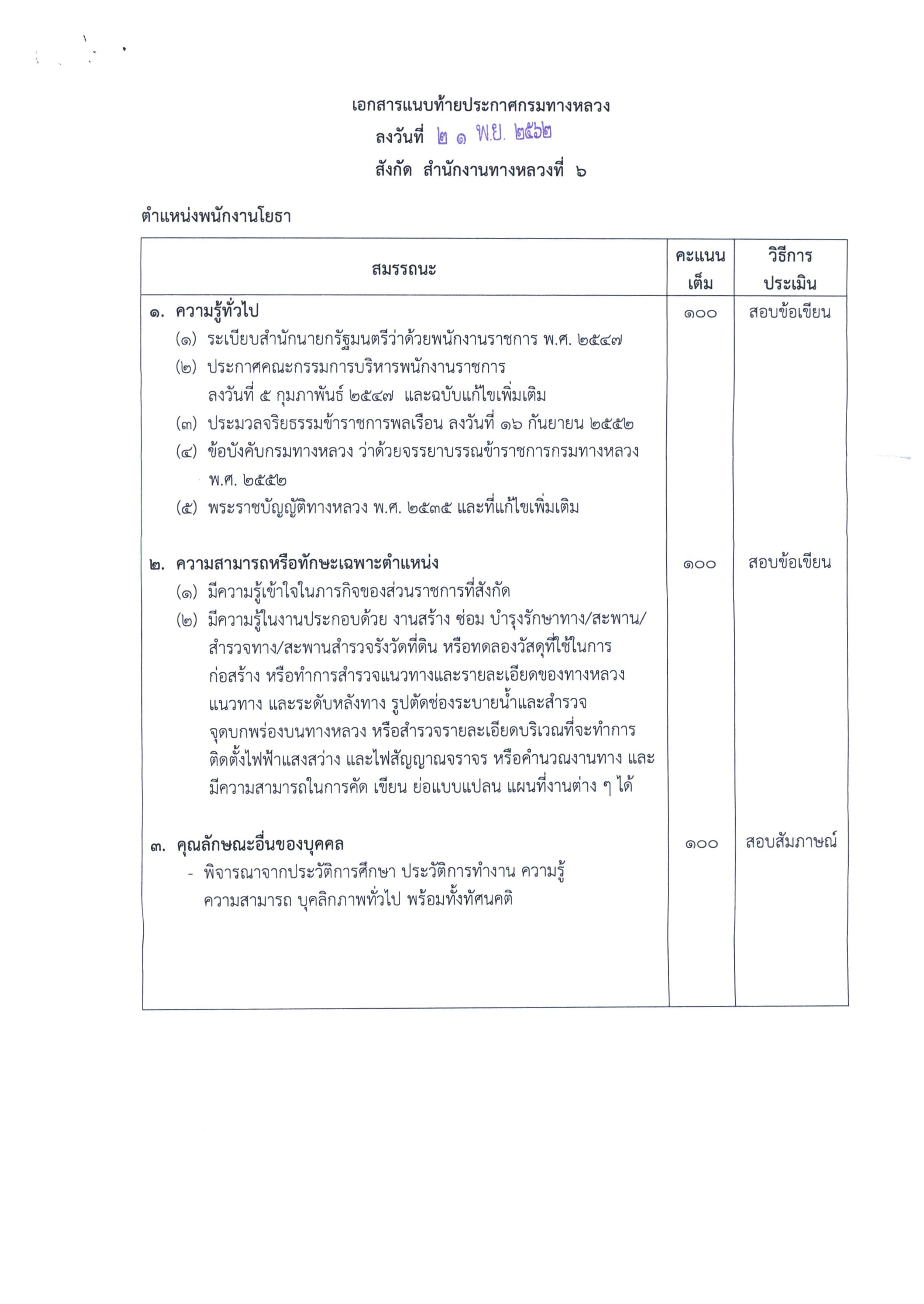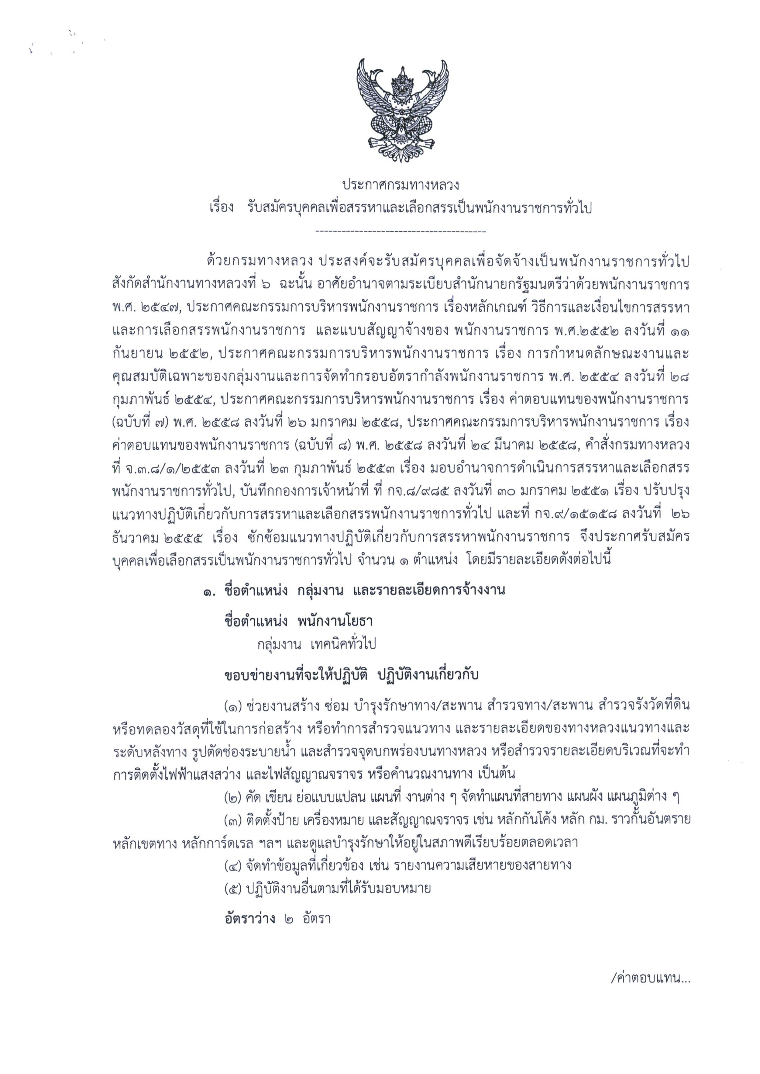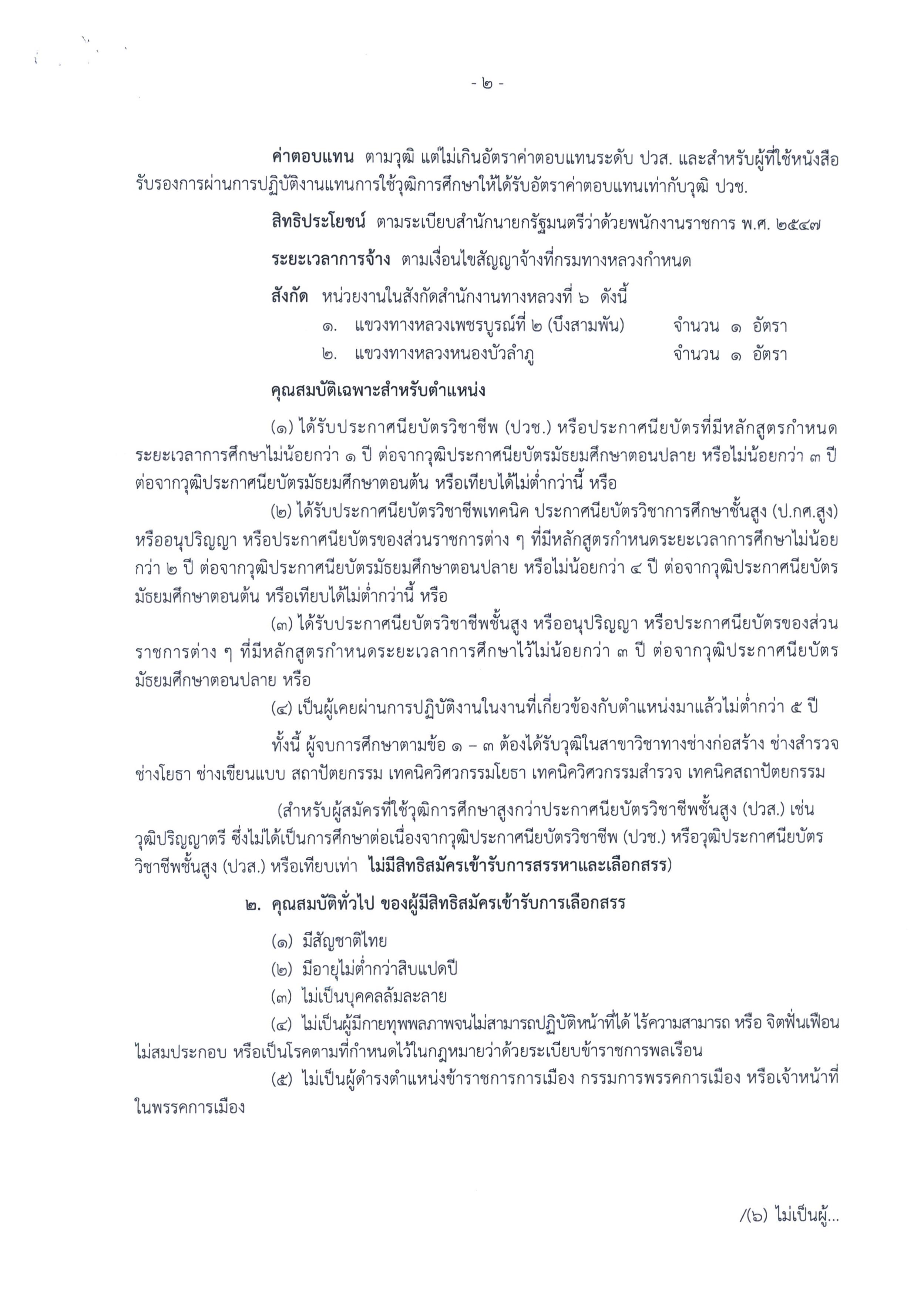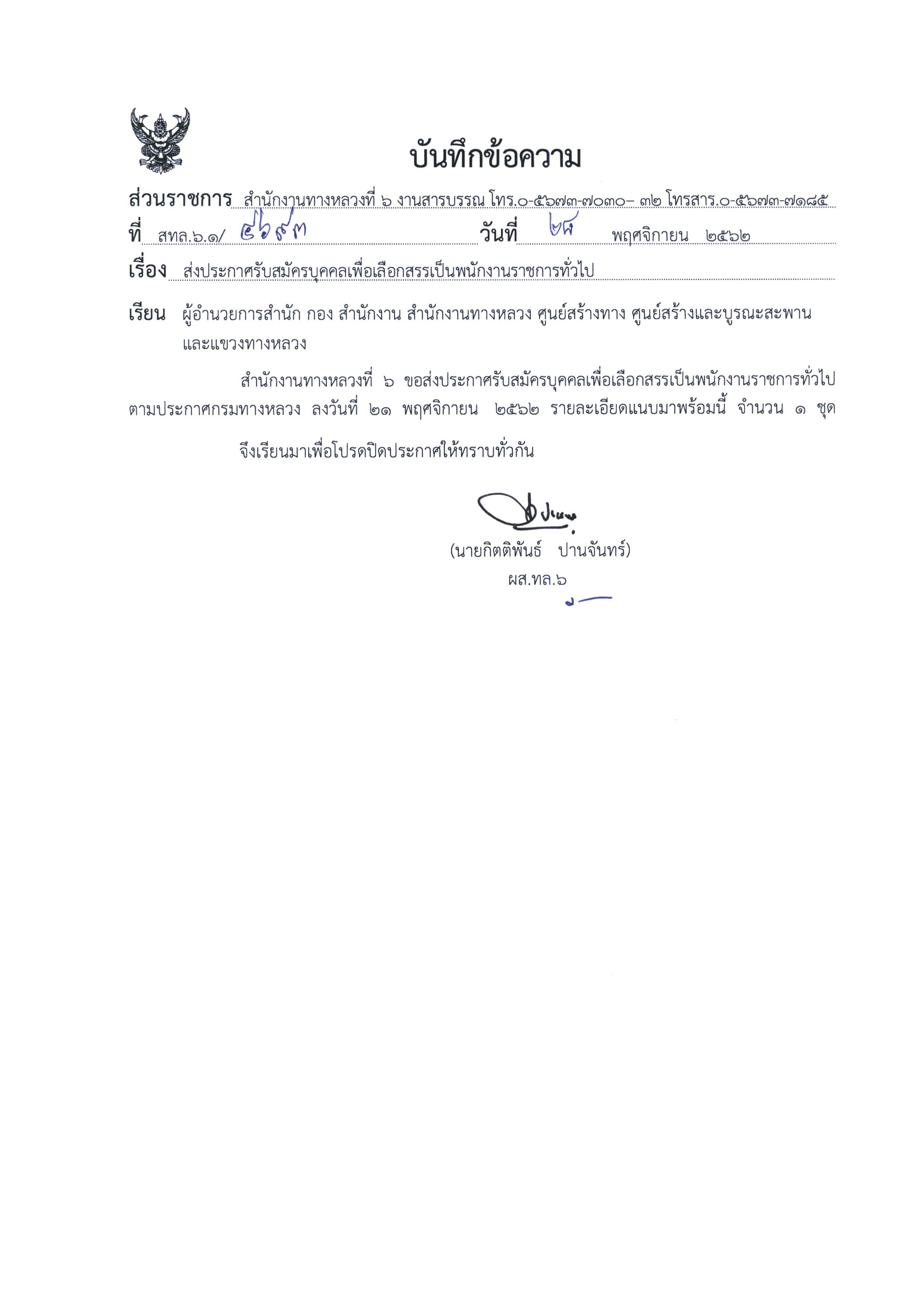 สำนักงานทางหลวงที่ 6 (เพชรบูรณ์) ประกาศรับสมัครบุคคลเพื่อเลือกสรรเป็นพนักงานราชการทั่วไป ตำแหน่งพนักงานโยธา ตั้งแต่วันที่ 16 ธ.ค. - 20 ธ.ค. 2562