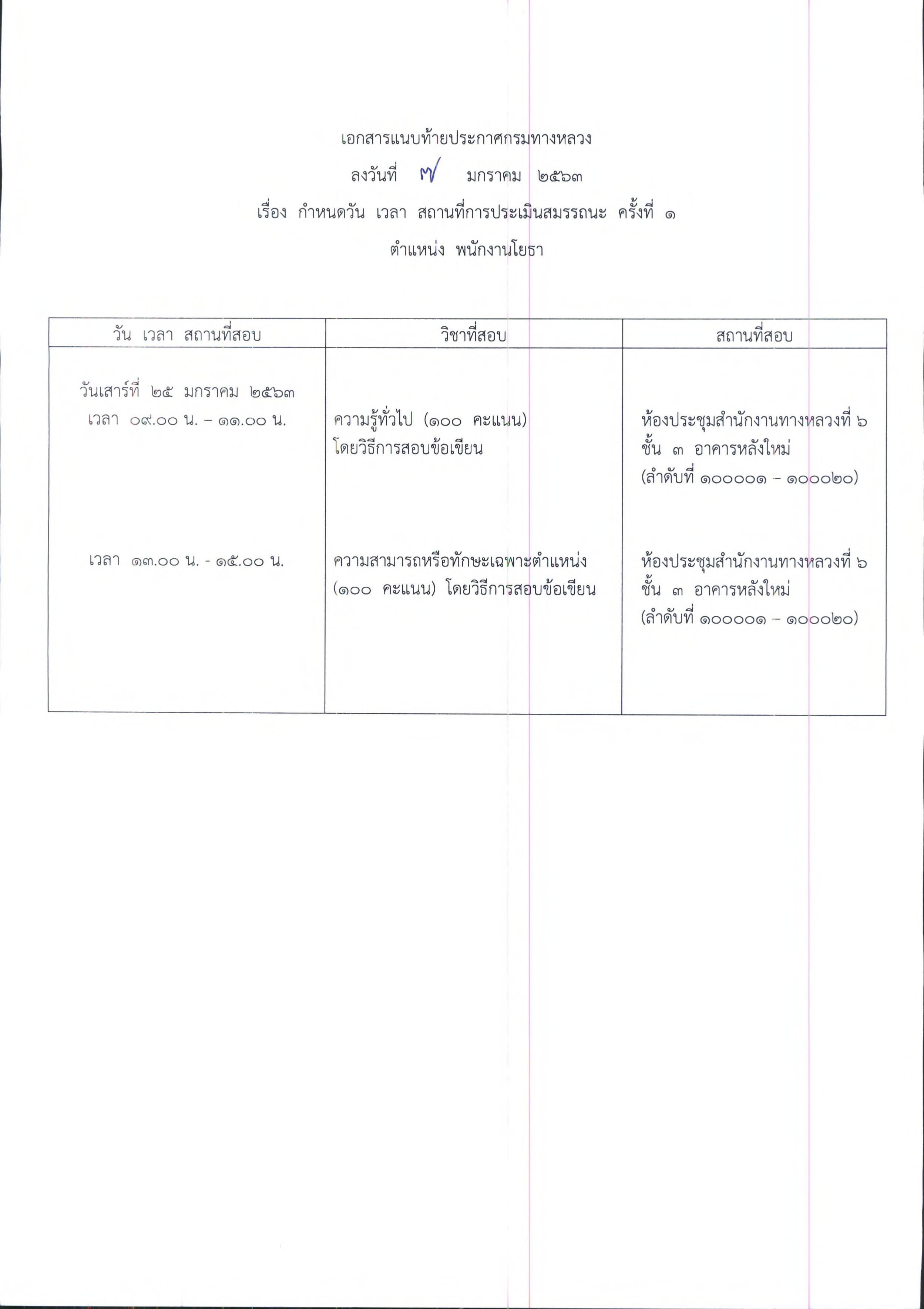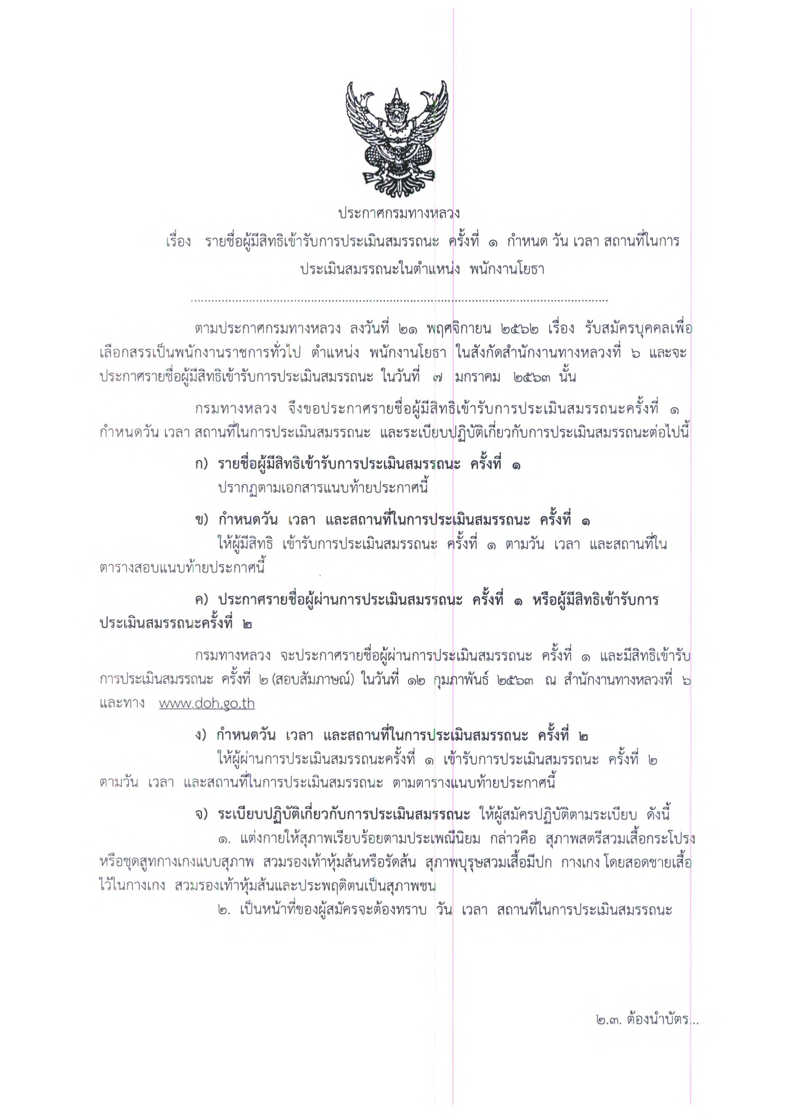ประกาศรายชื่อผู้มีสิทธิเข้ารับการประเมินสมรรถนะครั้งที่ 1 ตำแหน่งพนักงานโยธา