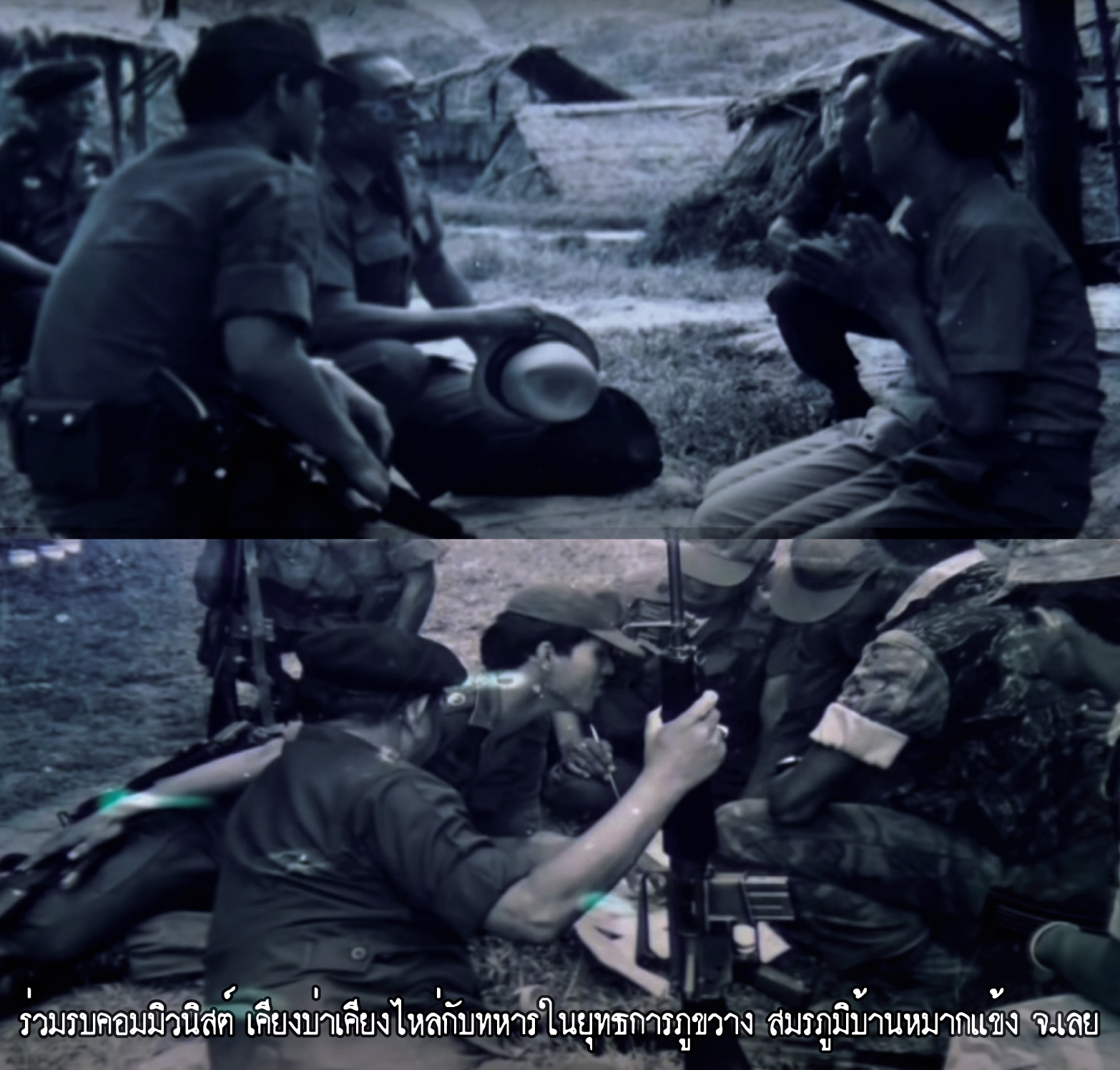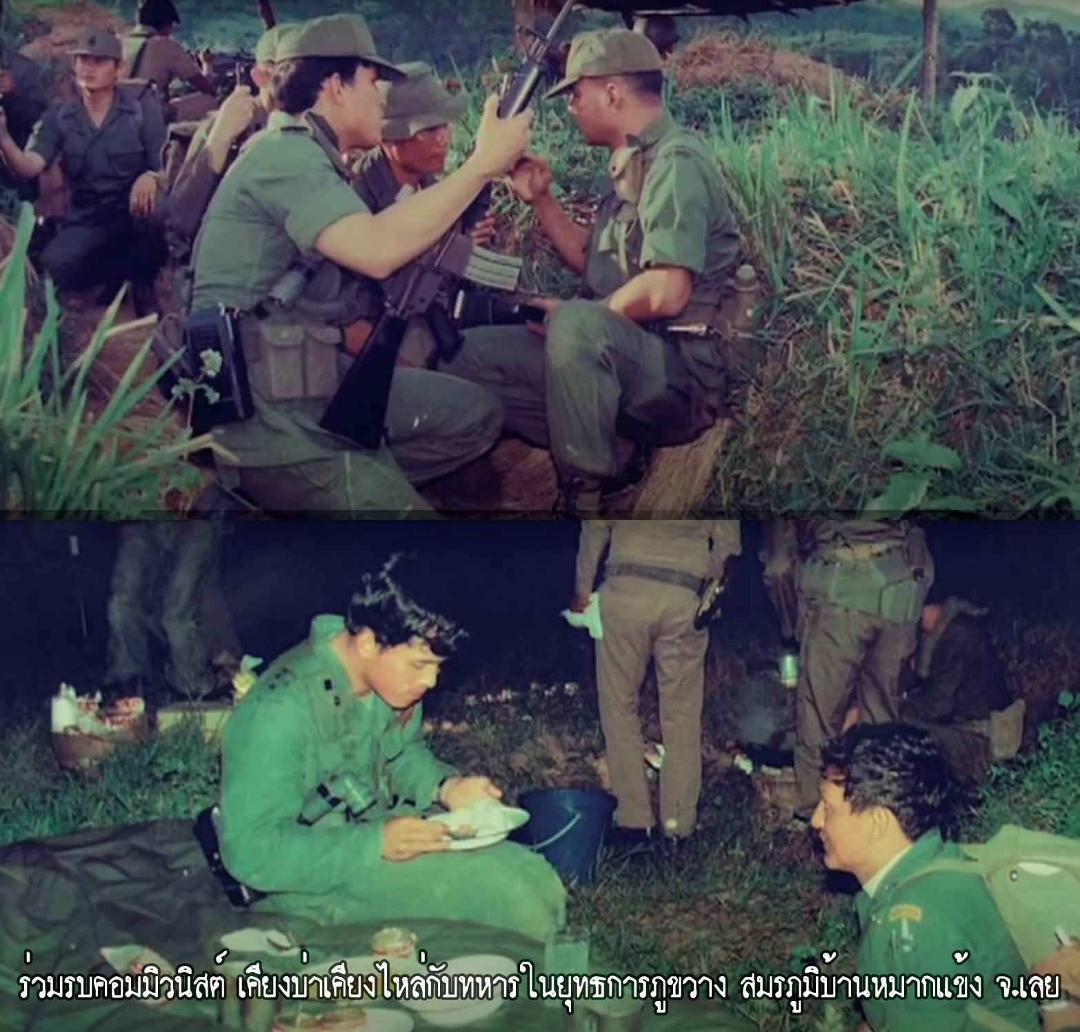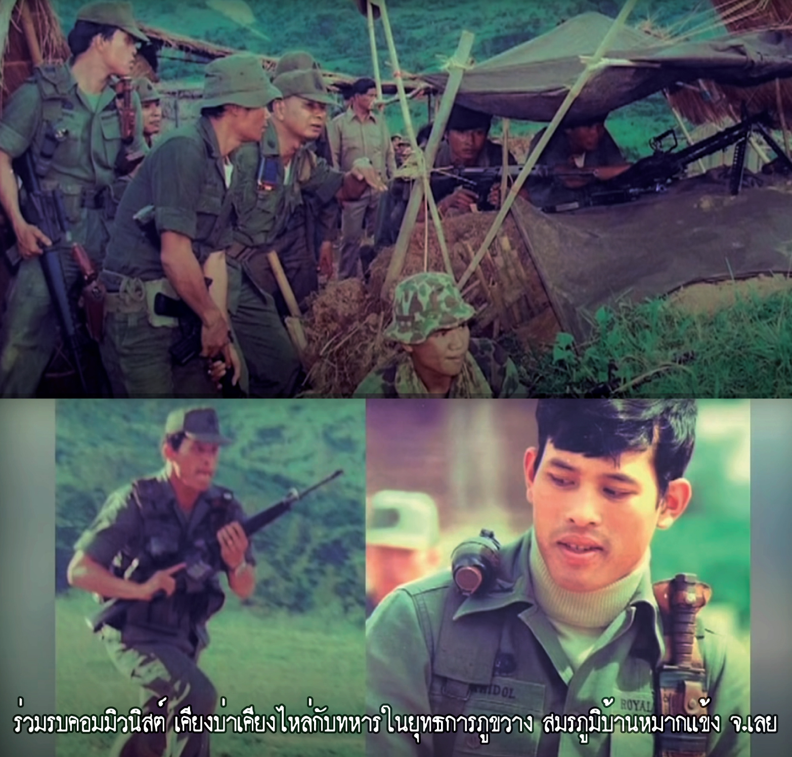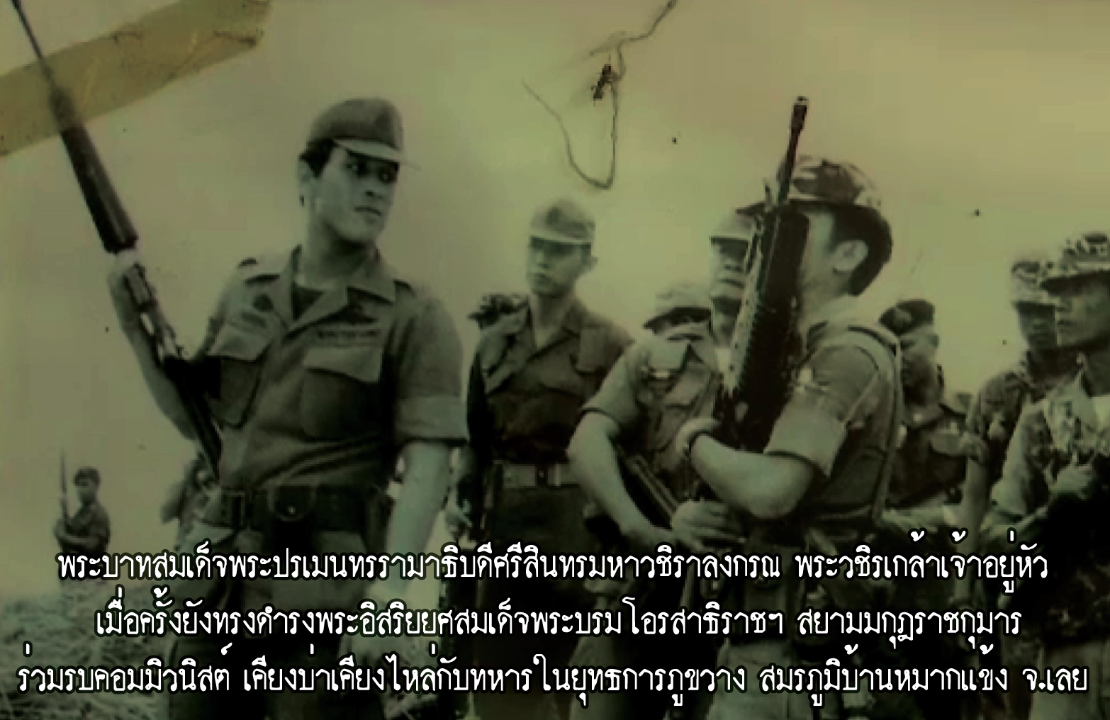 พระบาทสมเด็จพระปรเมนทรรามาธิบดีศรีสินทรมหาวชิราลงกรณ พระวชิรเกล้าเจ้าอยู่หัว เมื่อครั้งยังทรงดำรงพระอิสริยยศสมเด็จพระบรมโอรสาธิราชฯ สยามมกุฎราชกุมาร ร่วมรบคอมมิวนิสต์ เคียงบ่าเคียงไหล่กับทหารในยุทธการภูขวาง สมรภูมิบ้านหมากแข้ง จ.เลย